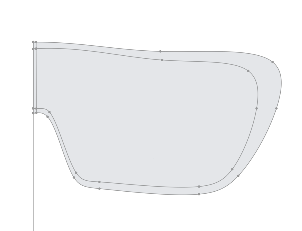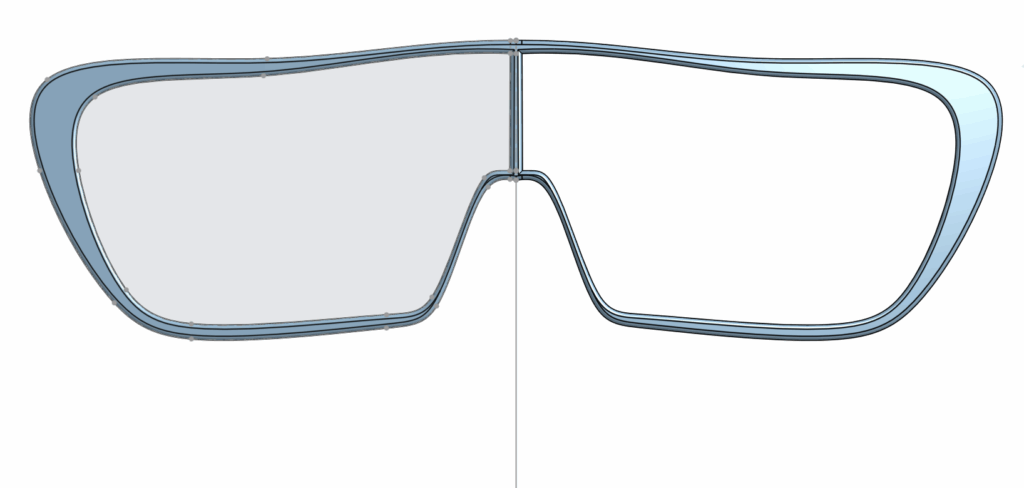 I started by drawing out the shape of the front frame, I left the temple sticks for later as a separate part. I only drew half of it out because I would later mirror it to make the full shape.