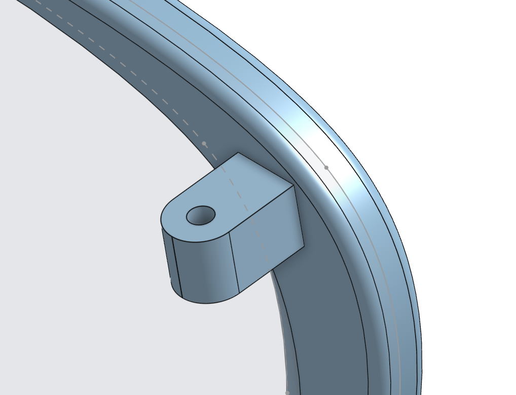 After the main part of the frame is done, I need to make the “door hinge” part to allow the sunglasses to connect to the temples. To do this I create a small part that sticks out of the frame and put a hole into it.
