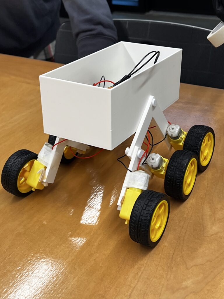 From this process, we learned how to bring an idea to life. We started small in the brainstorming stage, thinking about little details and piecing together a design prompt. Then we went to the designing stage, going through many designs of how we pictured the vehicle in our heads and putting it on the CAD. After that, we 3D printed it and put everything together. Once we did that, we went on to test the vehicle a few times to understand how good it really was.