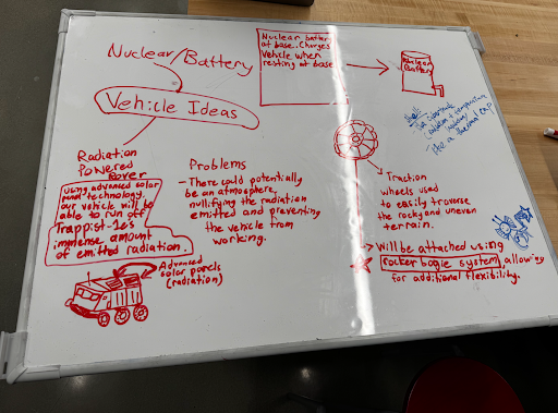 Below is our whiteboard where we drafted many ideas for our vehicle.