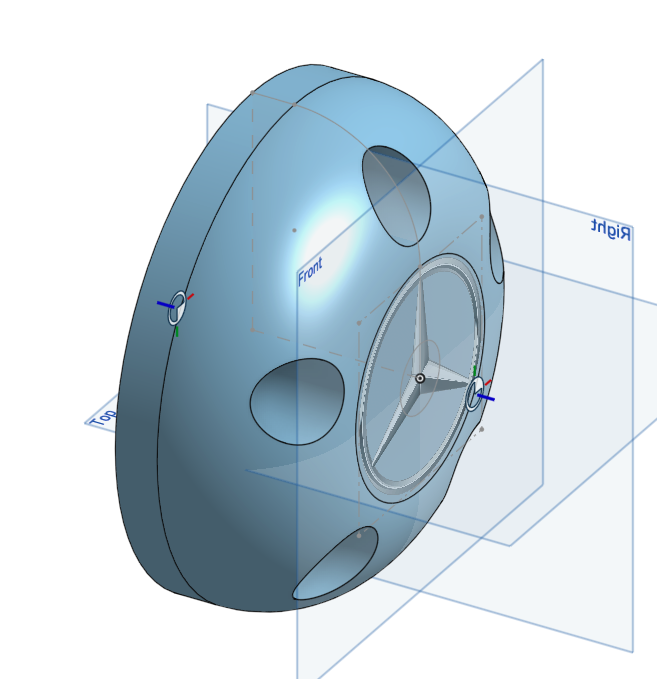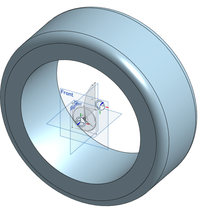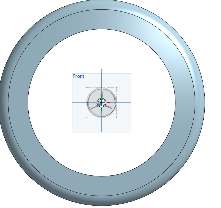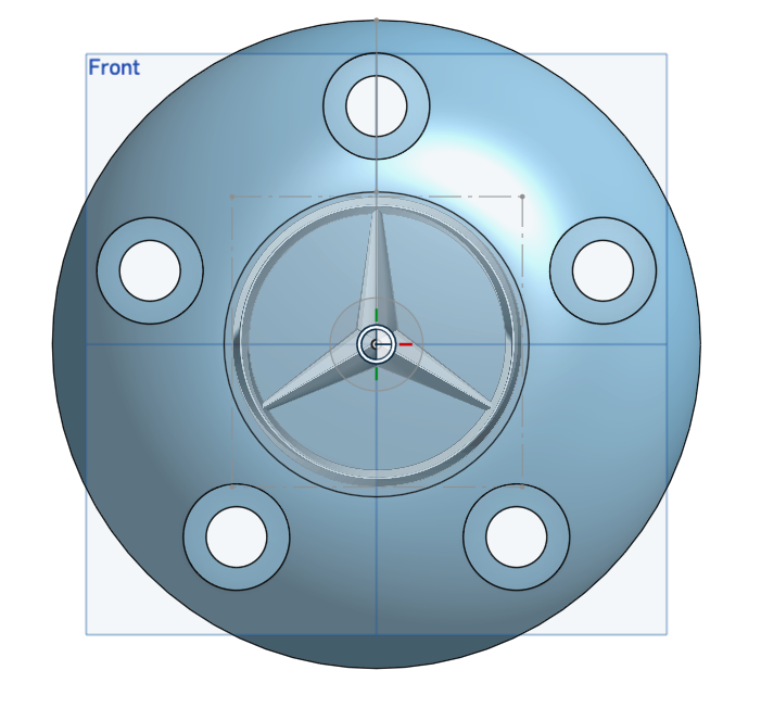 The first part I designed was the center disc, a circular cover that fits into the center opening of the wheel rim.