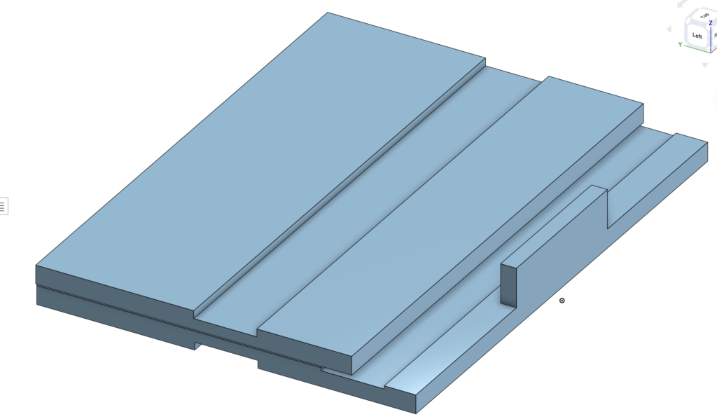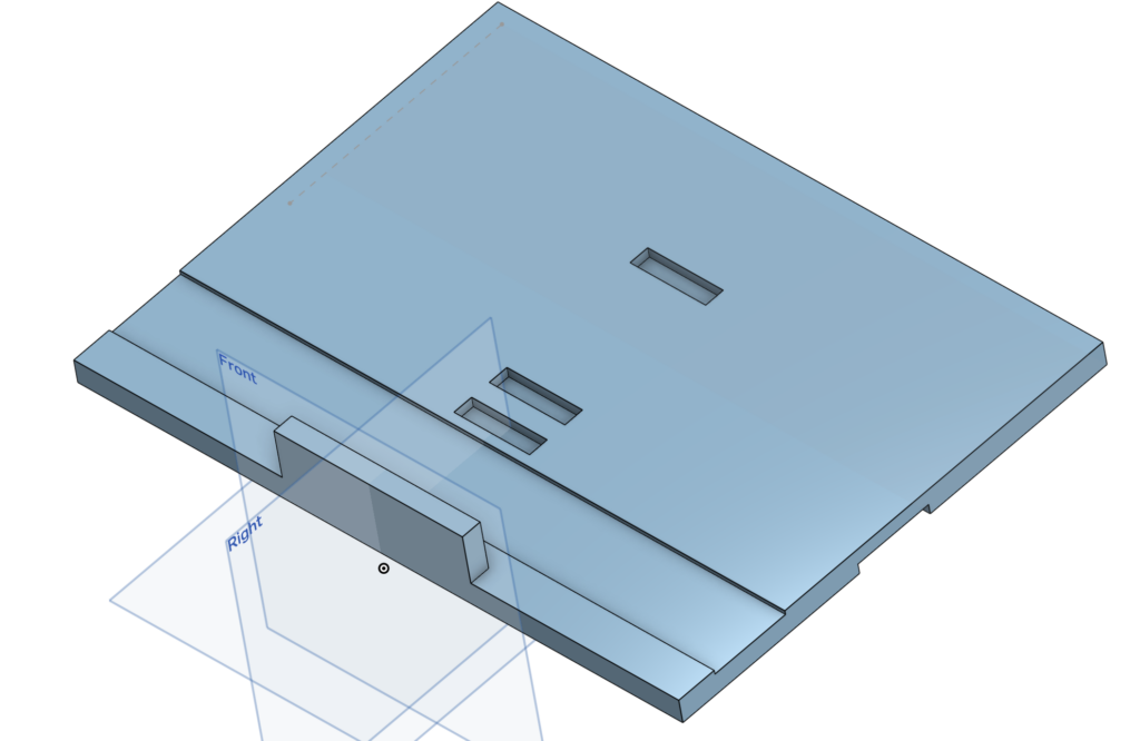 I made a recessed area at the back edge of the base for the tilting hinges (1.5–2 mm deep so they sit flat and don’t add extra thickness when closed).
