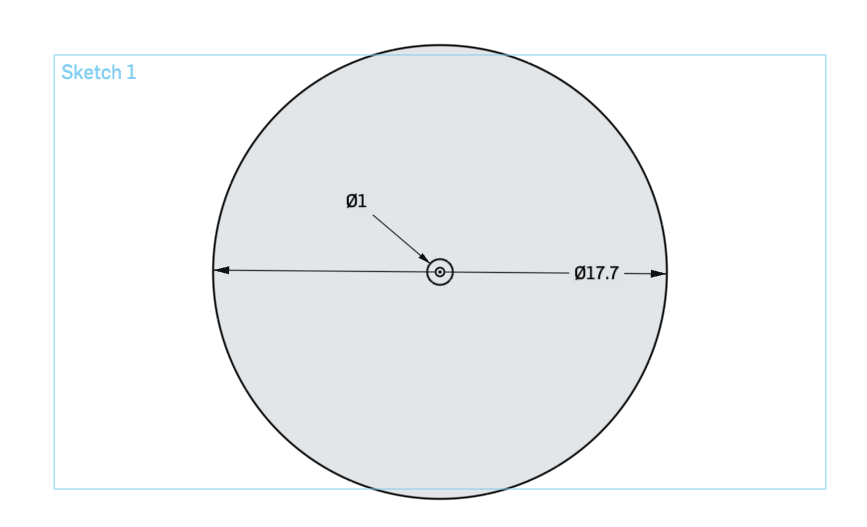 The first part of this project was the sketching of the plate. This sketch represents the base of the plate, before I added extra details. The diameter is 17.7 inches (standard), and there is also a smaller circle in the middle (1 inch diameter). Two circles are needed because later on during the extruding phase, I only wanted to extrude the area around the small circle, leaving a hole in the middle.
