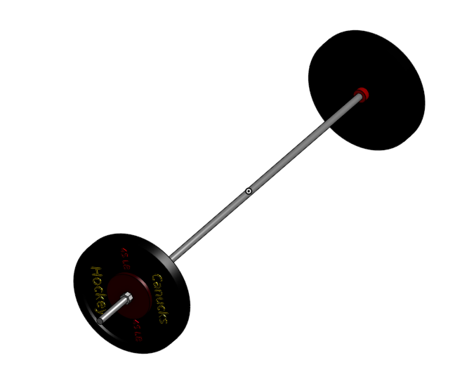 The final barbell was created by adding more parts to the initial bar shown previously. Of course, the bar needed stoppers to prevent the weight plates from colliding. In order to include them, I was required to do mathematical calculations regarding the length of the overall barbell.