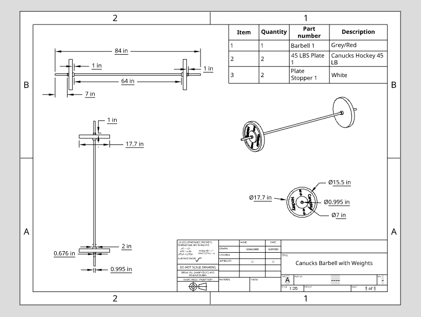 The assembly part of this process was difficult to understand at first. Elements like mates, and finding a way to add restrictions on them was challenging at first. During this process, I set the barbell as the fixed element, making it easier to slide the rest of the elements on it. I used cylindrical mates to connect the plates and the bars. I learned that these allow the user to spin/rotate them and slide them along the plate.