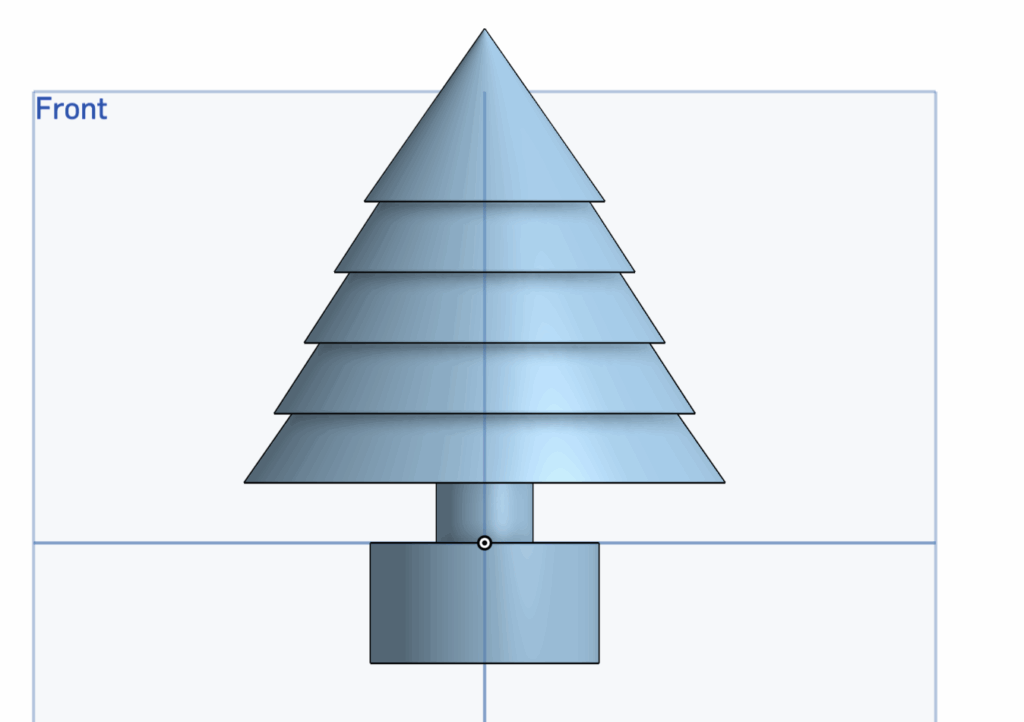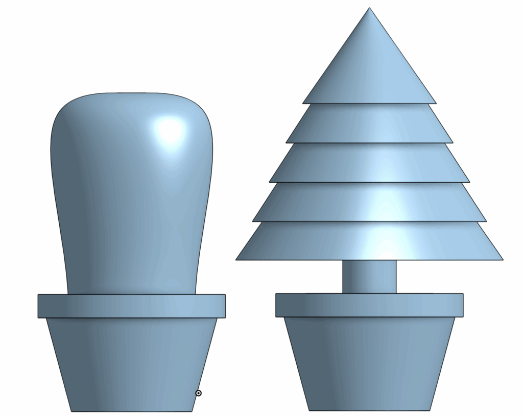 The visible part of the design is the tree, while the attachment stub at the bottom would fit into the pot. Because I am relatively new to CAD, I chose this design to effectively refine three main skills.