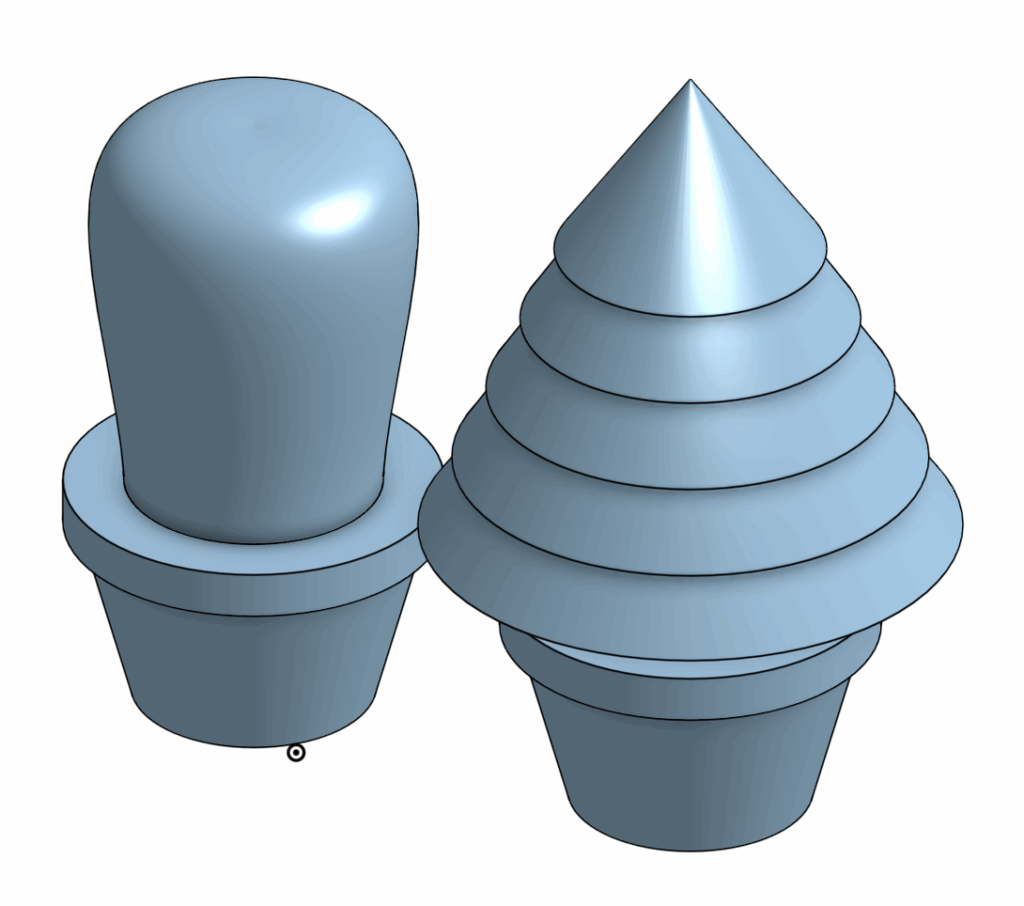 The next step of the project is to realize these sketches. This would be accomplished with two main tools, revolve and extrude. The revolve tool allows a user to select an axis from their sketch and create a 3D model by rotating the 2D sketch around the selected axis, until either it meets itself to create a ring shape or the user stops the revolve to create a shape similar to a slice of pie. This tool is helpful for designing circular models, such as in this case for the body of the cactus.