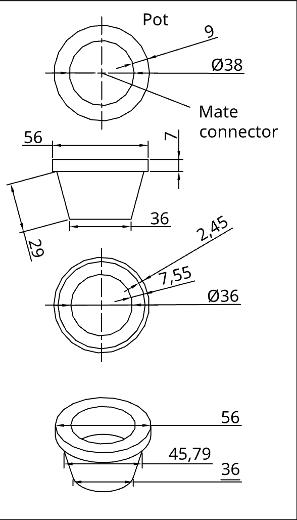 Ultimately, by combining my skills in sketching, extruding & revolving, assembly, and creating a mechanical drawing with a bill of materials, I was able to create a simple houseplant CAD design.