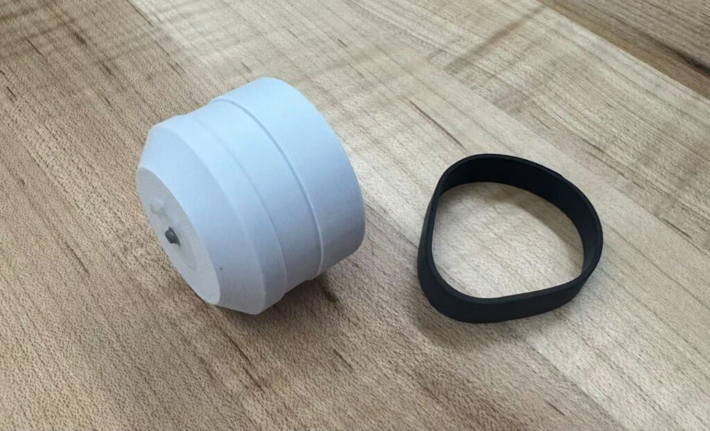 To address the issue we faced in the first prototype, where the rubber treads were too loose to attach and easily melted under hot glue, we redesigned the wheels to include an indentation for secure attachment. We decided to exchange the large treads for smaller, more elastic ones that would be fitted across each wheel instead of over four. This design allows for firmness without additional hot glue. We also replaced the original wooden axles with metal ones to prevent bending under the tighter treads.