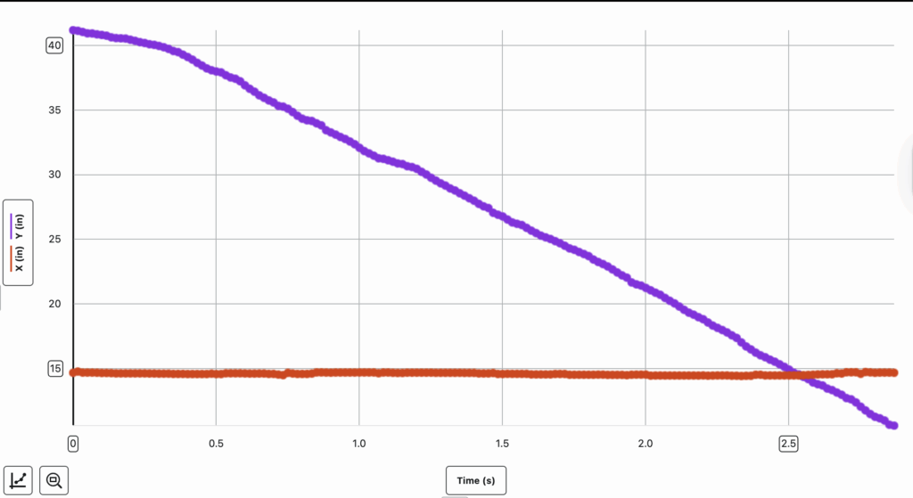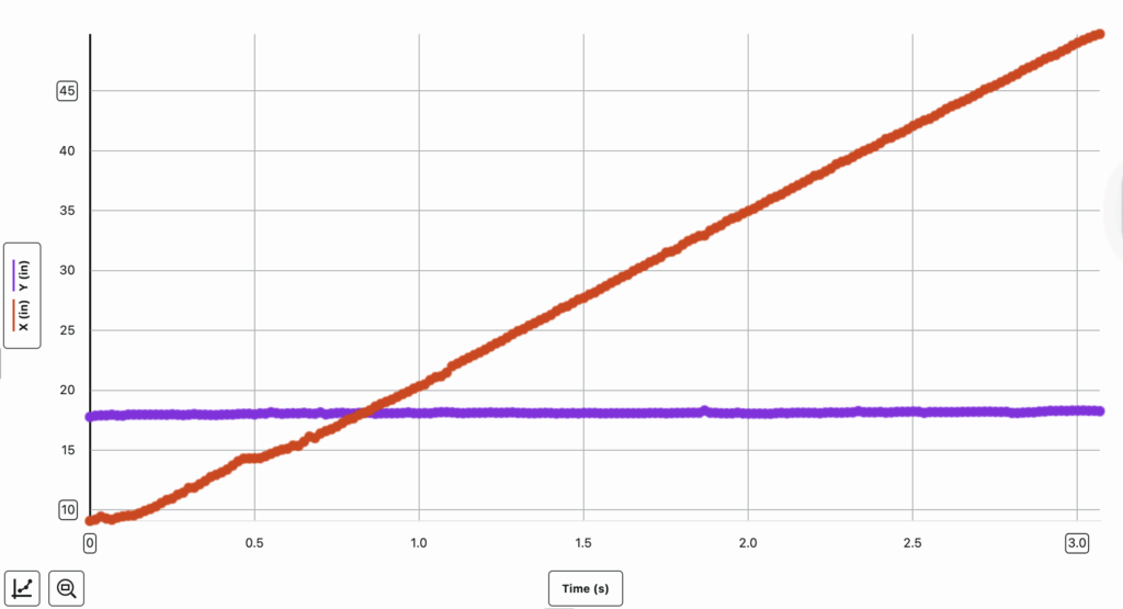 The goal of data collection is to find the efficiency of the vehicle. Using an ammeter and voltmeter, we found that the current and voltage of the vehicle were 0.52 Amps and 7.34 Volts, respectively. This data will act as the input for the vehicle’s efficiency, as it measures the energy the motors receive from the batteries. The mass of the vehicle was measured to be 506.7 g. Through the Vernier Video Analysis Lab, we were able to calculate the speed of our vehicle, finding it to be 0.28 m/s on sandy terrain and 0.34 m/s on icy terrain. This data will act as the output for efficiency.