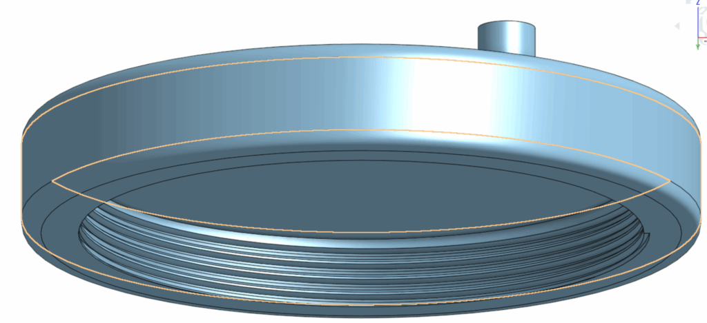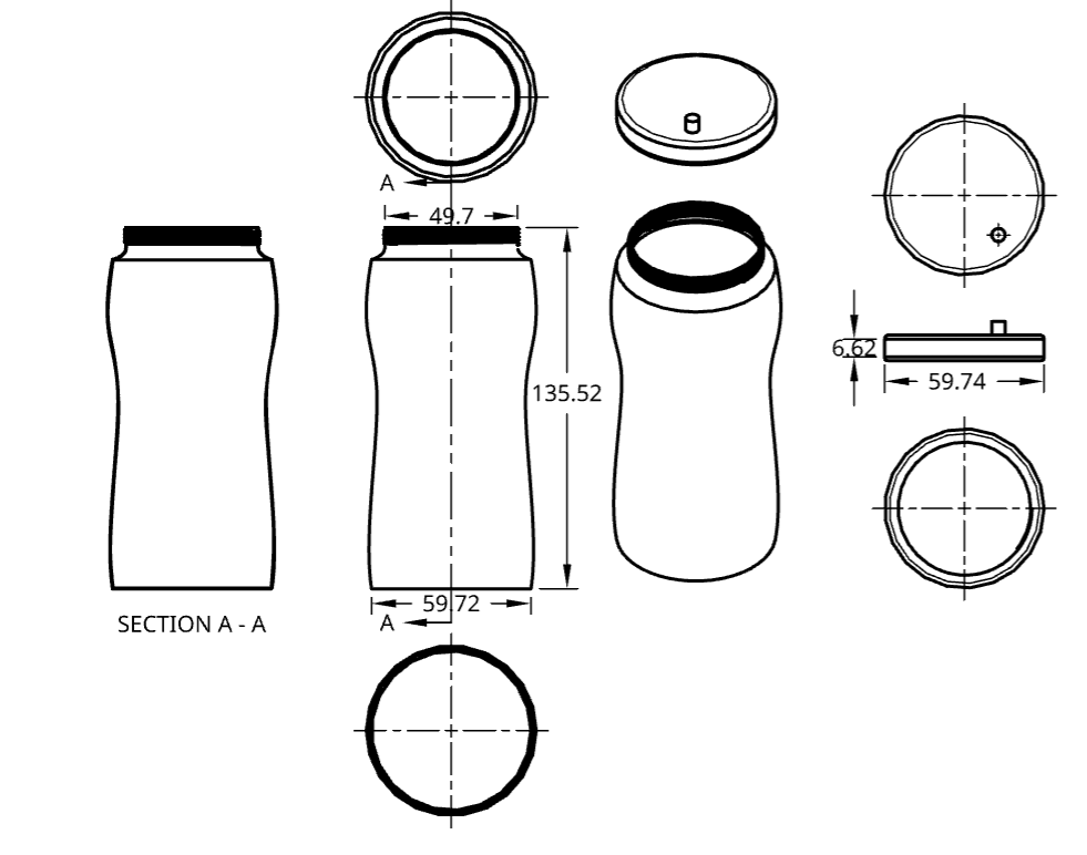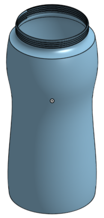 I did the same on the Lid but with the sweep I made it remove so it can perfectly fit onto the bottle. after making a hole that is the right size. in the cap I used a sketch and used the center point circle tool to make a circle then used the extrude tool to remove a hole through the original design.