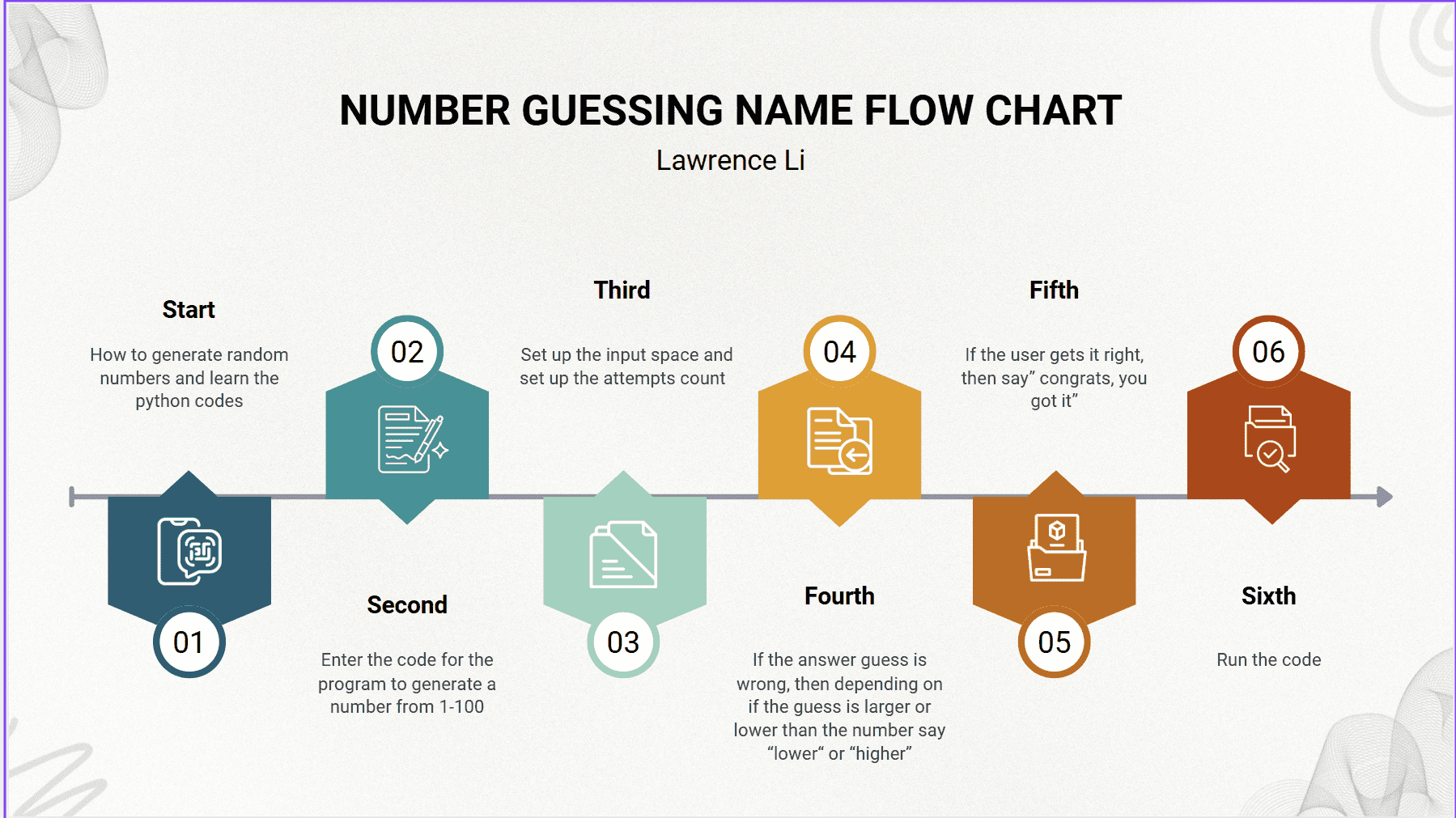 I started with thinking of doing something sports related like a bouncing ball code. However, It came out that the background and the ball image is hard to be crafted together. From this, I got inspired to make a number guessing game.