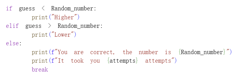 These are just codes that will give feedbacks if the player gets the wrong answer and also stop when the player guessed the correct answer