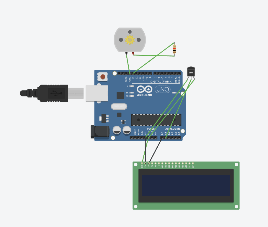 This is the progress that I have made so far. I finished enhancing the circuit from my previous assignment, including the fan and temperature.