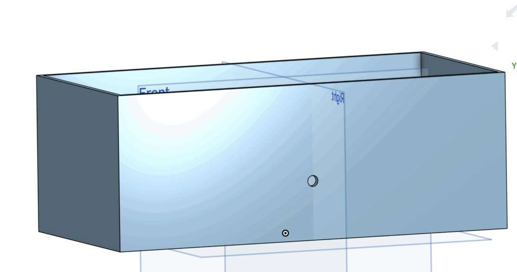 ROCKER BOGIE SYSTEM: The image above is the rocker bogie system. The smaller body acts as the bogie, and the larger body acts as the rocker. The small holes are connected via screws (also made on CAD, image below). With wheels attached at the bottom of the legs of the bodies, the vehicle can traverse through rough terrain and over steep hills.