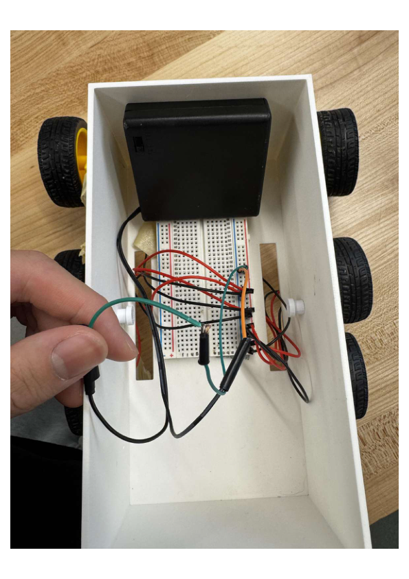 – Having a small vehicle body can be quite challenging when you’re using the breadboard within it very often. A lot of the time, the wires attached to the breadboard were messy and having a moderately larger body may have solved this issue.