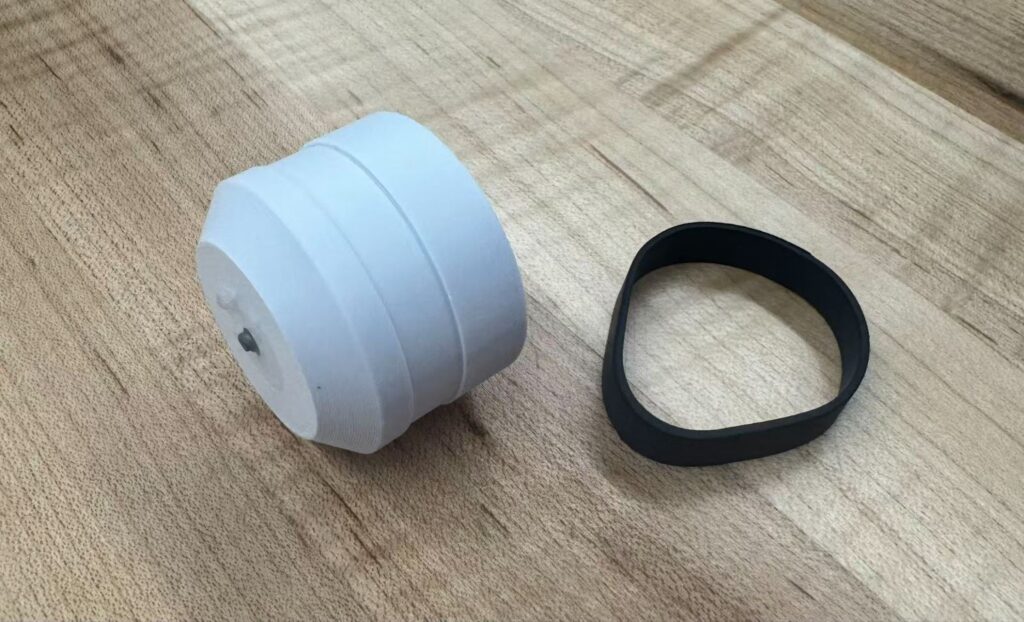 Our final solution was a collective of all of our improvements planned out following our first tests failure. To fix our issue we originally faced with our treads not attaching to the wheels we decided to make a new wheel design printed out of a stronger PLA with a ridge meant to fit a rubber band allowing for better traction. We also decided to drop a motor and take our vehicle from eight wheels to six. To support our vehicles immense weight we made metal axels by using an electric saw